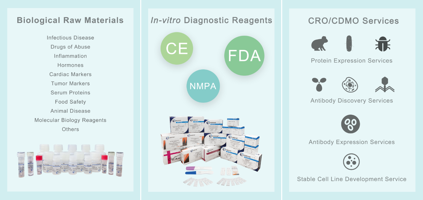| Biological Raw Materials | IVD Products | CRO / CDMO Services |