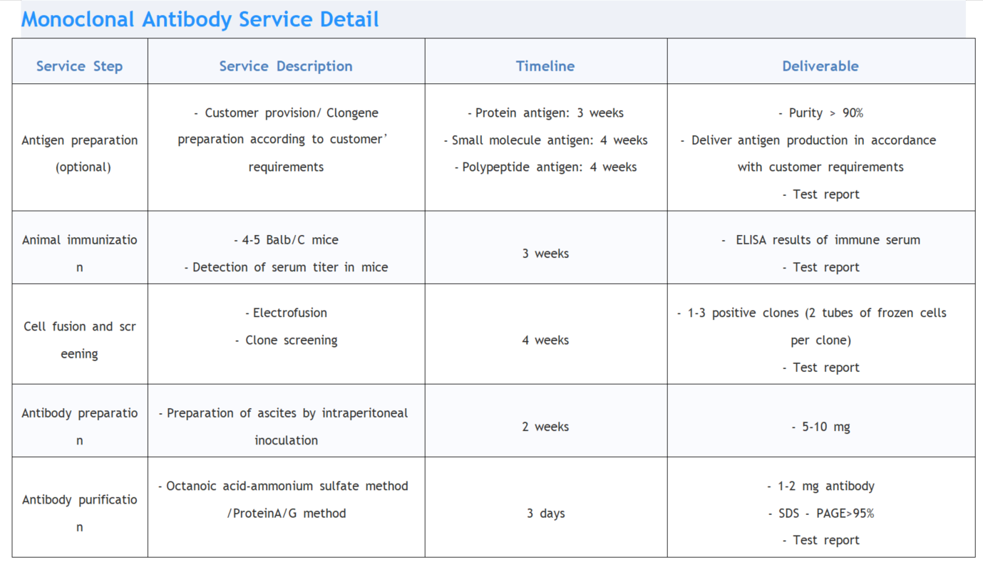 · Customizable services: comprehensive services from antigen expression to hybridoma antibody development and antibody production can be tailored for each customer to meet the special needs of each customer.